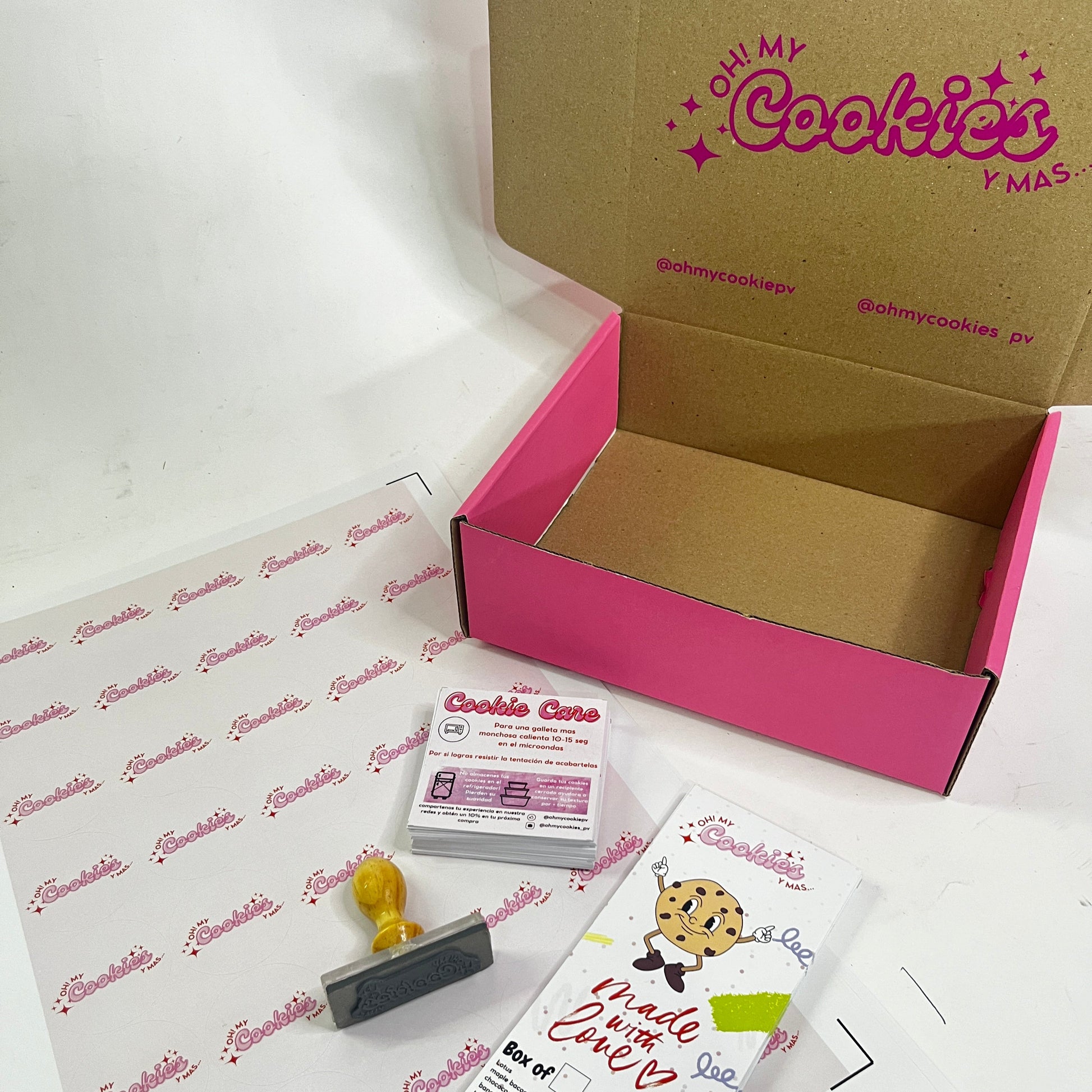 Cajas Serrano + Tarjetas agradecimiento + Stickers redondos + Stickers sella caja